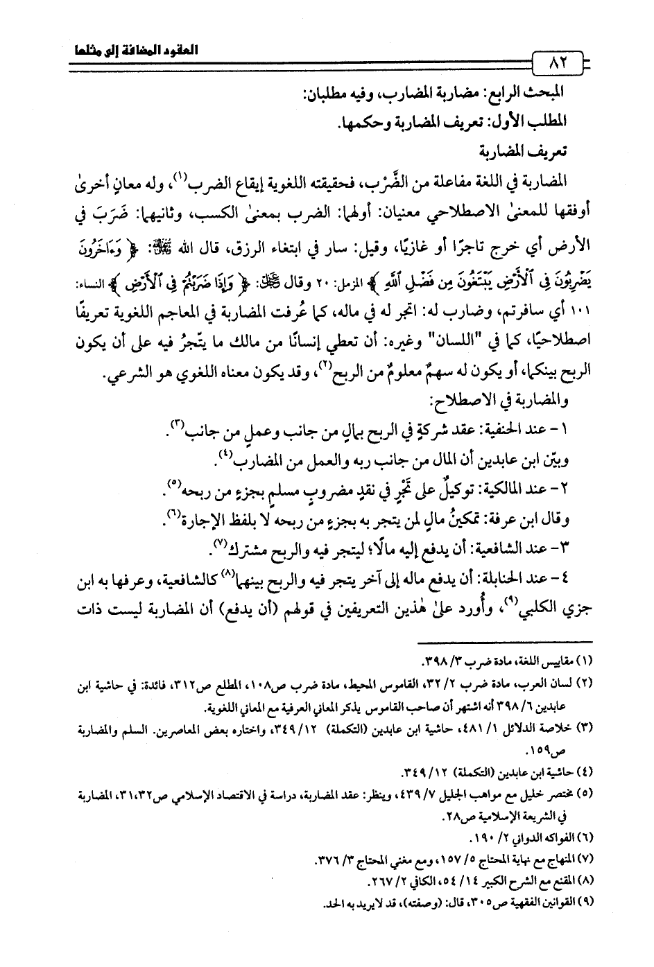 (¬3) خلاصة الدلائل 1/ 481، حاشية ابن عابدين (التكملة) 12/ 349، واختاره بعض المعاصرين. السلم والمضاربة ص 159.