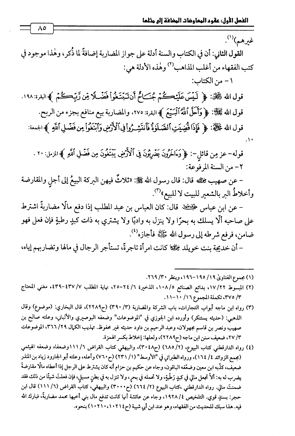 القول الثاني: أن في الكتاب والسنة أدلة على جواز المضاربة إضافةً لما ذُكر، وهذا موجود في كتب الفقهاء من أغلب المذاهب (¬2) وهذه الأدلة هي: