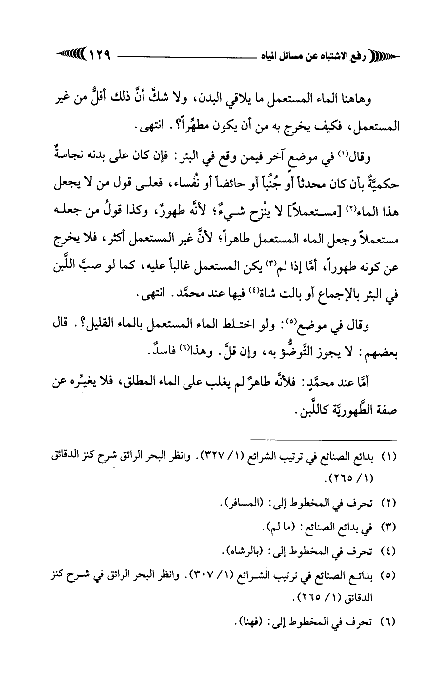 (¬5) بدائع الصنائع في ترتيب الشرائع (1/ 307). وانظر البحر الرائق في شرح كنز الدقائق (1/ 265).