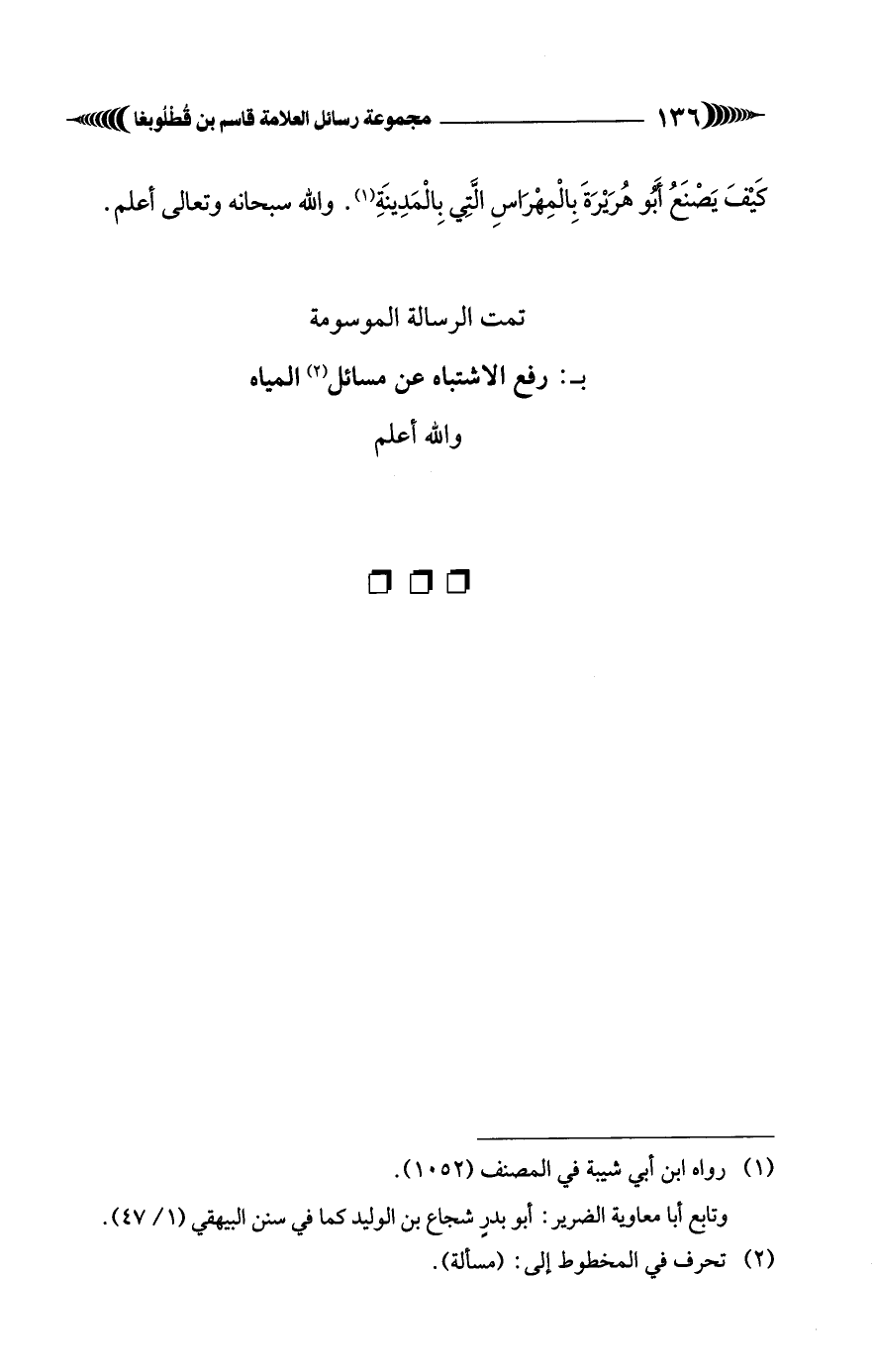 بـ: رفع الاشتباه عن مسائل (¬2) المياه