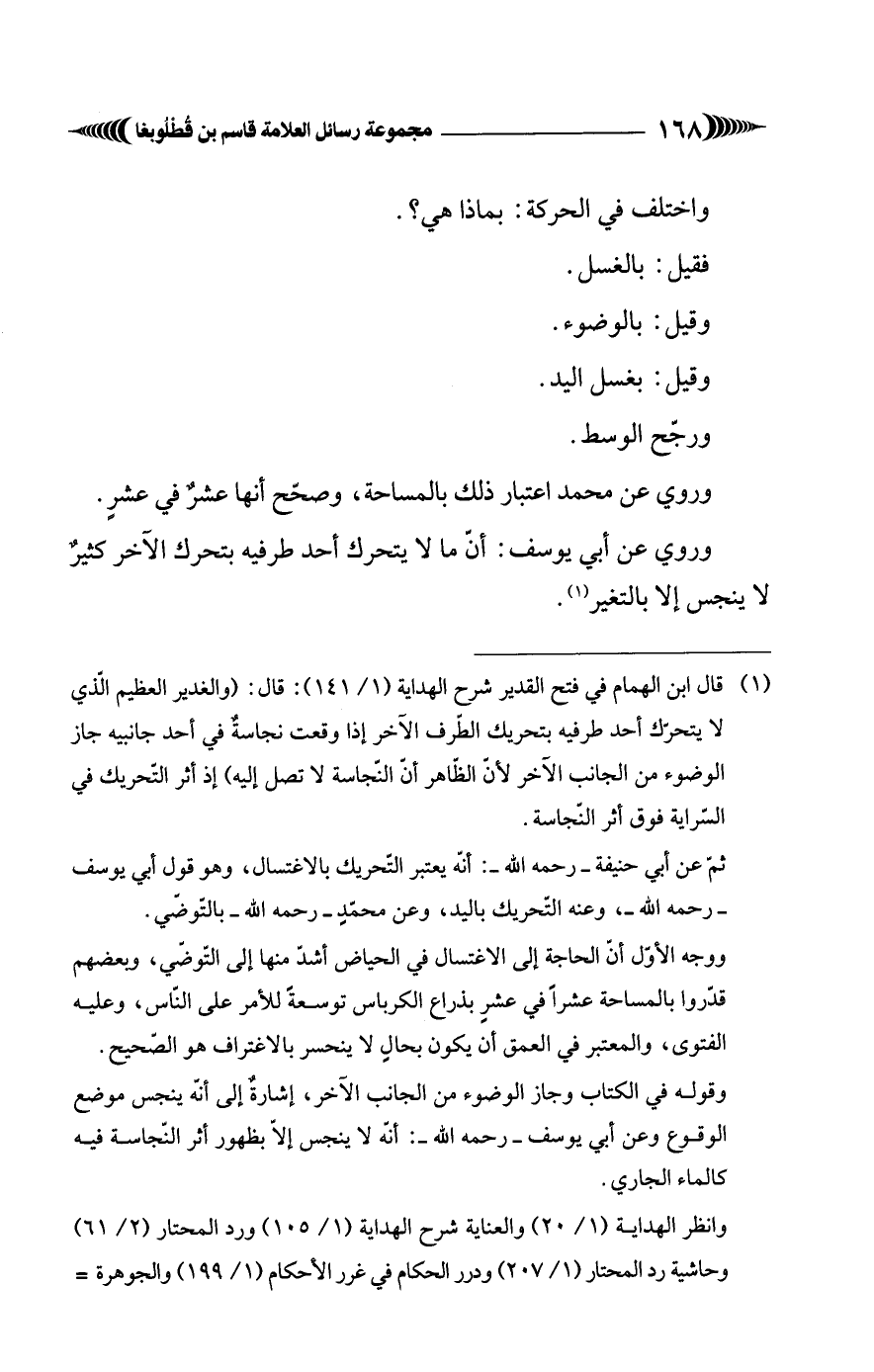 وانظر الهداية (1/ 20) والعناية شرح الهداية (1/ 105) ورد المحتار (2/ 61) وحاشية رد المحتار (1/ 207) ودرر الحكام في غرر الأحكام (1/ 199) والجوهرة =