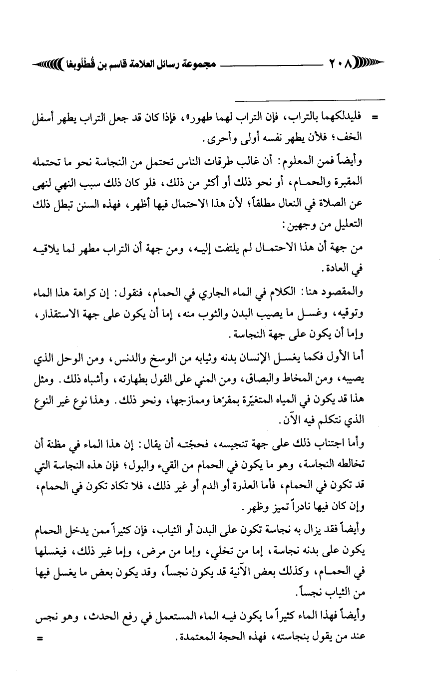 وأيضًا فقد يزال به نجاسة تكون على البدن أو الثياب، فإن كثيرًا ممن يدخل الحمام يكون على بدنه نجاسة، إما من تخلي، وإما من مرض، وإما غير ذلك، فيغسلها في الحمام، وكذلك بعض الآنية قد يكون نجسًا، وقد يكون بعض ما يغسل فيها من الثياب نجسًا.