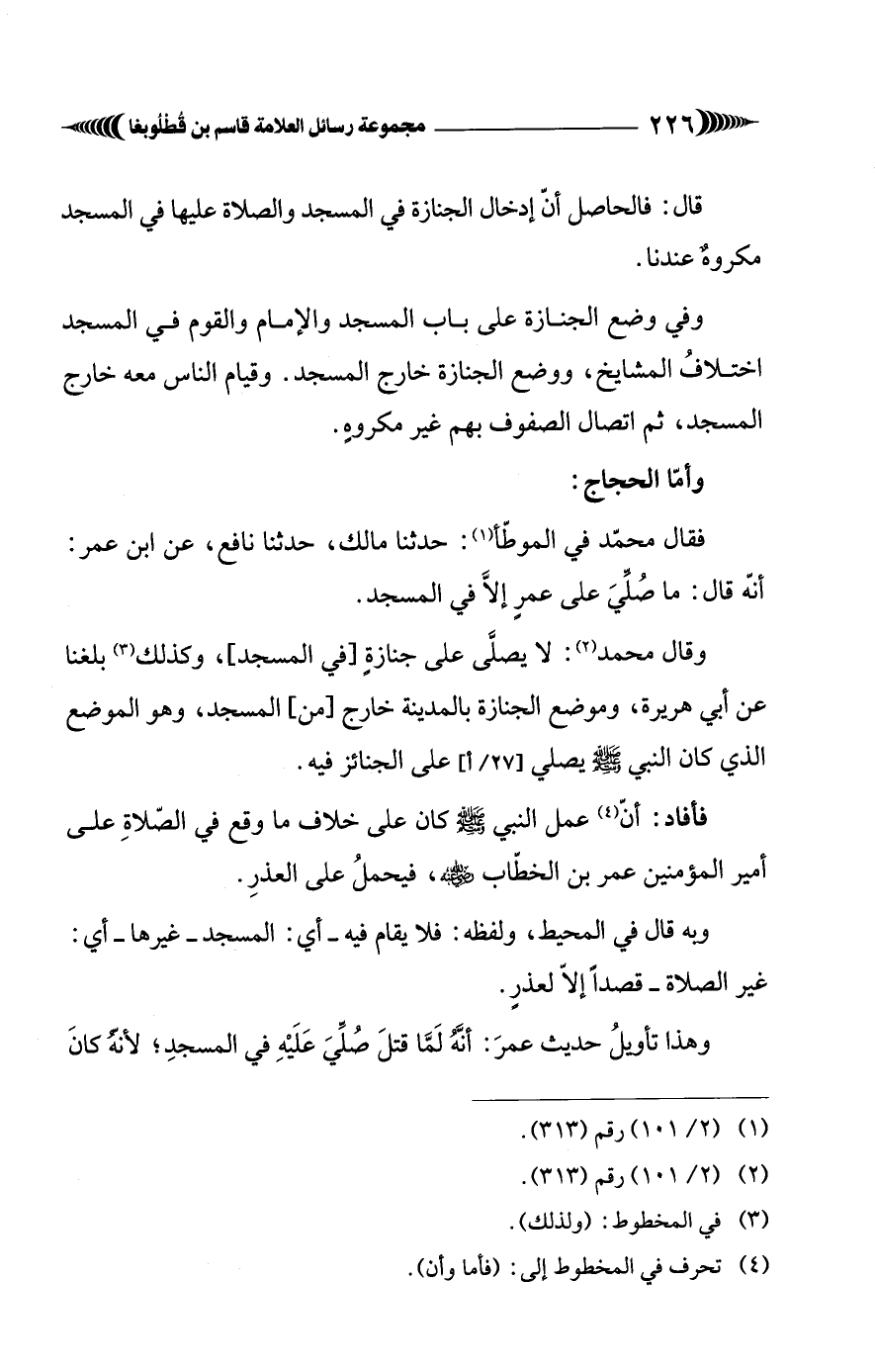 فأفاد: أنّ (¬4) عمل النبي - صلى الله عليه وسلم - كان على خلاف ما وقع في الصّلاةِ على أمير المؤمنين عمر بن الخطّاب - رضي الله عنه -، فيحملُ على العذرِ.