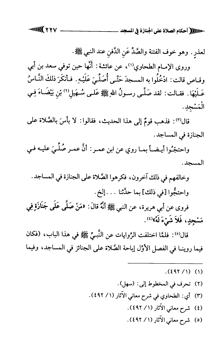 قال (¬5): فلمَّا اختلفت الروايات عن النَّبيِّ - صلى الله عليه وسلم - في هذا الباب، (فكان فيما روينا في الفصل الأوَّل إباحة الصَّلاة على الجنائز في المساجد، وفيما