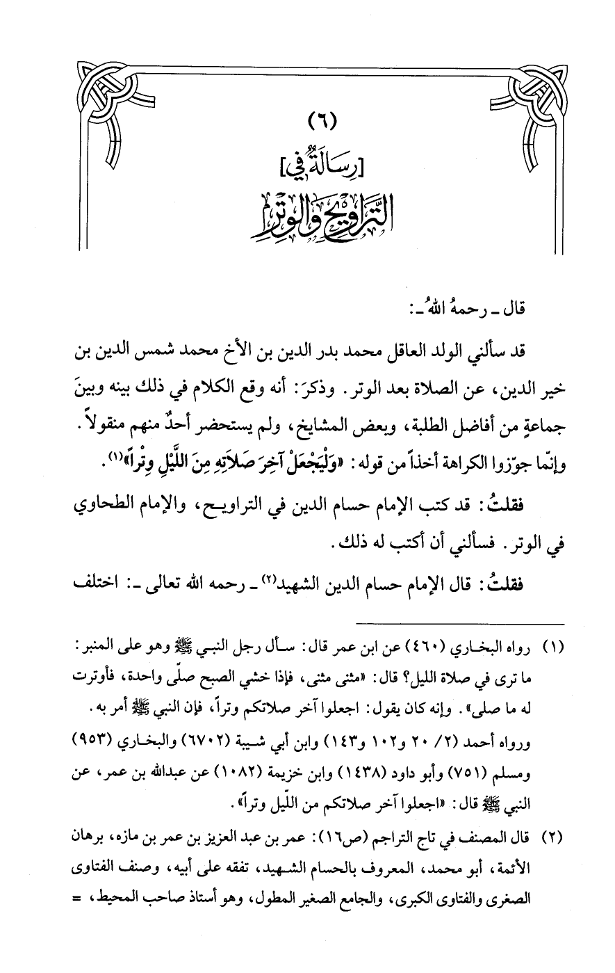 (6) [رِسَالَةٌ فِي] التَّرَاوِيحِ وَالوِتْرِ