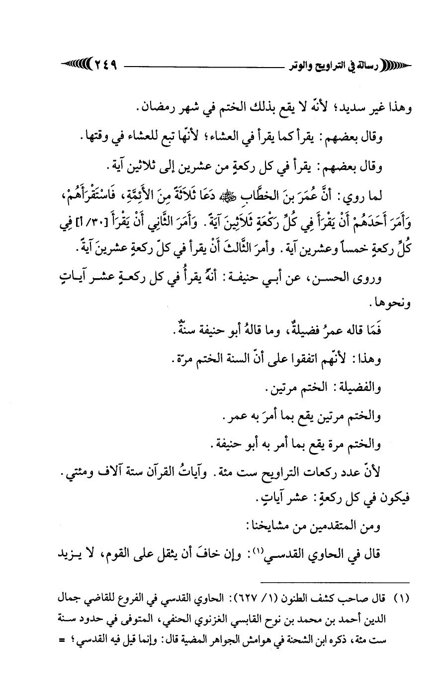 (¬1) قال صاحب كشف الظنون (1/ 627): الحاوي القدسي في الفروع للقاضي جمال الدين أحمد بن محمد بن نوح القابسي الغزنوي الحنفي، المتوفى في حدود سنة ست مئة، ذكره ابن الشحنة في هوامش الجواهر المضية قال: وإنما قيل فيه القدسي؛ =