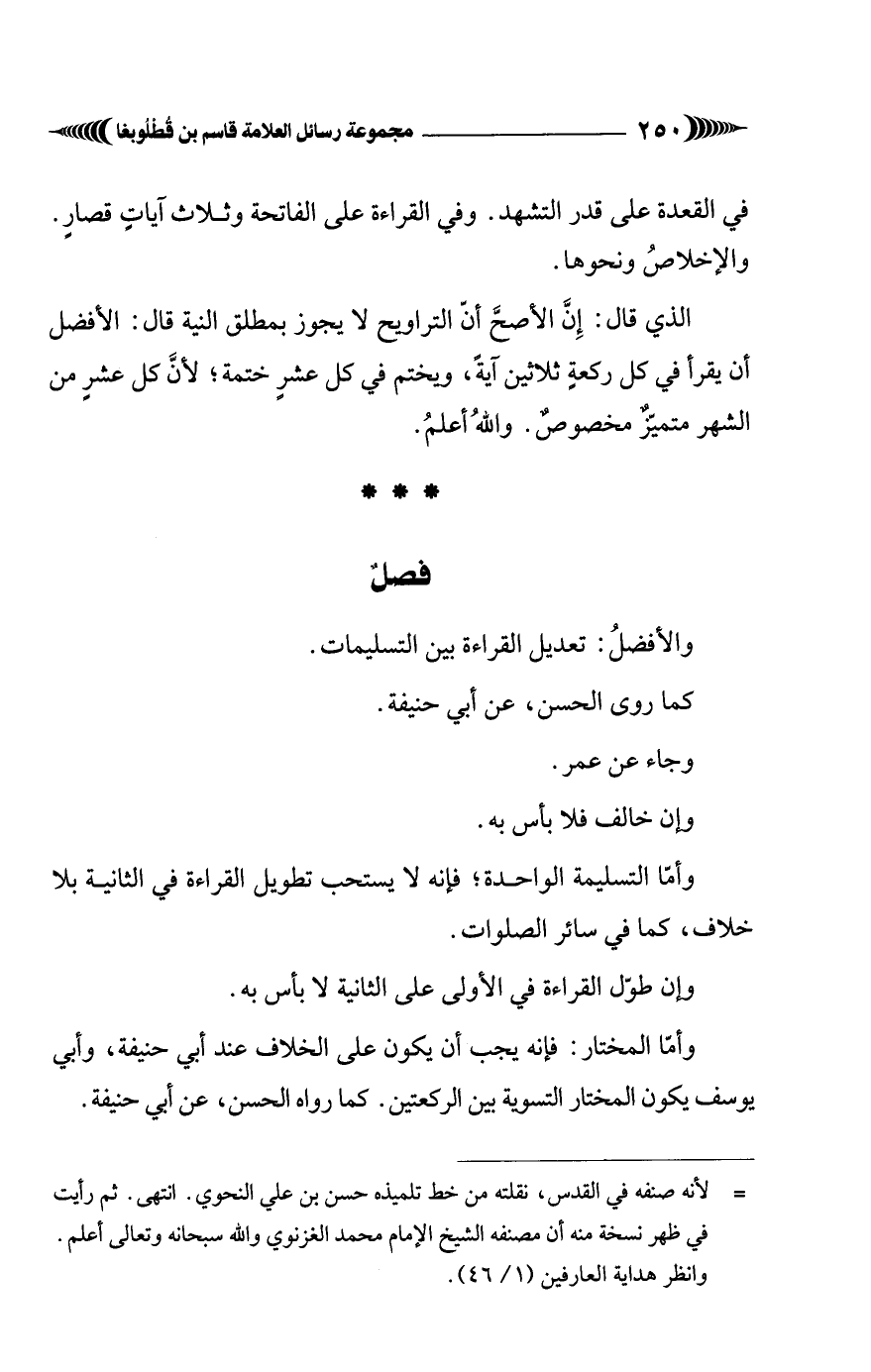 وأمّا المختار: فإنه يجب أن يكون على الخلاف عند أبي حنيفة، وأبي يوسف يكون المختار التسوية بين الركعتين. كما رواه الحسن، عن أبي حنيفة.