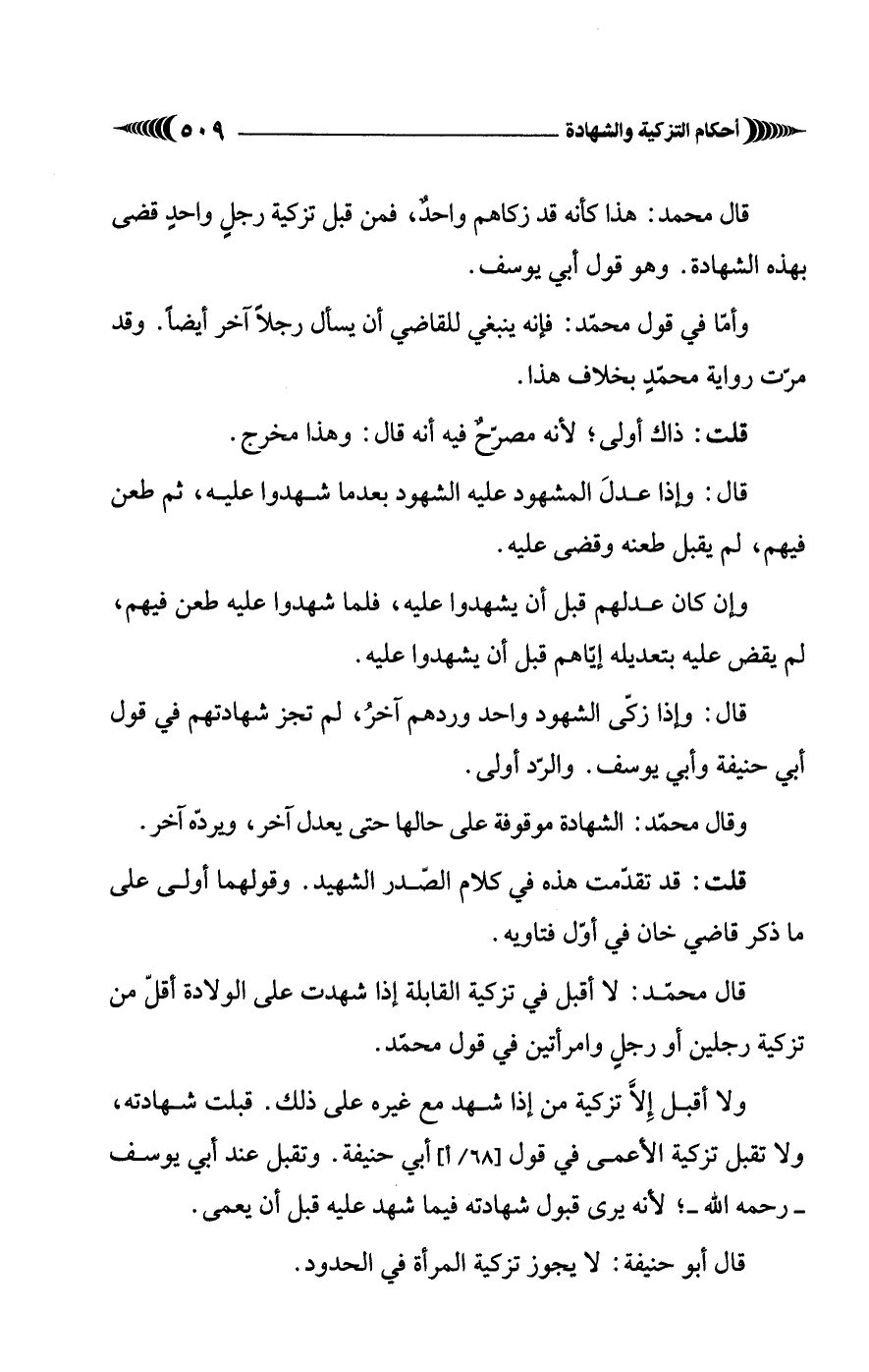 قال محمّد: لا أقبل في تزكية القابلة إذا شهدت على الولادة أقلّ من تزكية رجلين أو رجلٍ وامرأتين في قول محمّد.