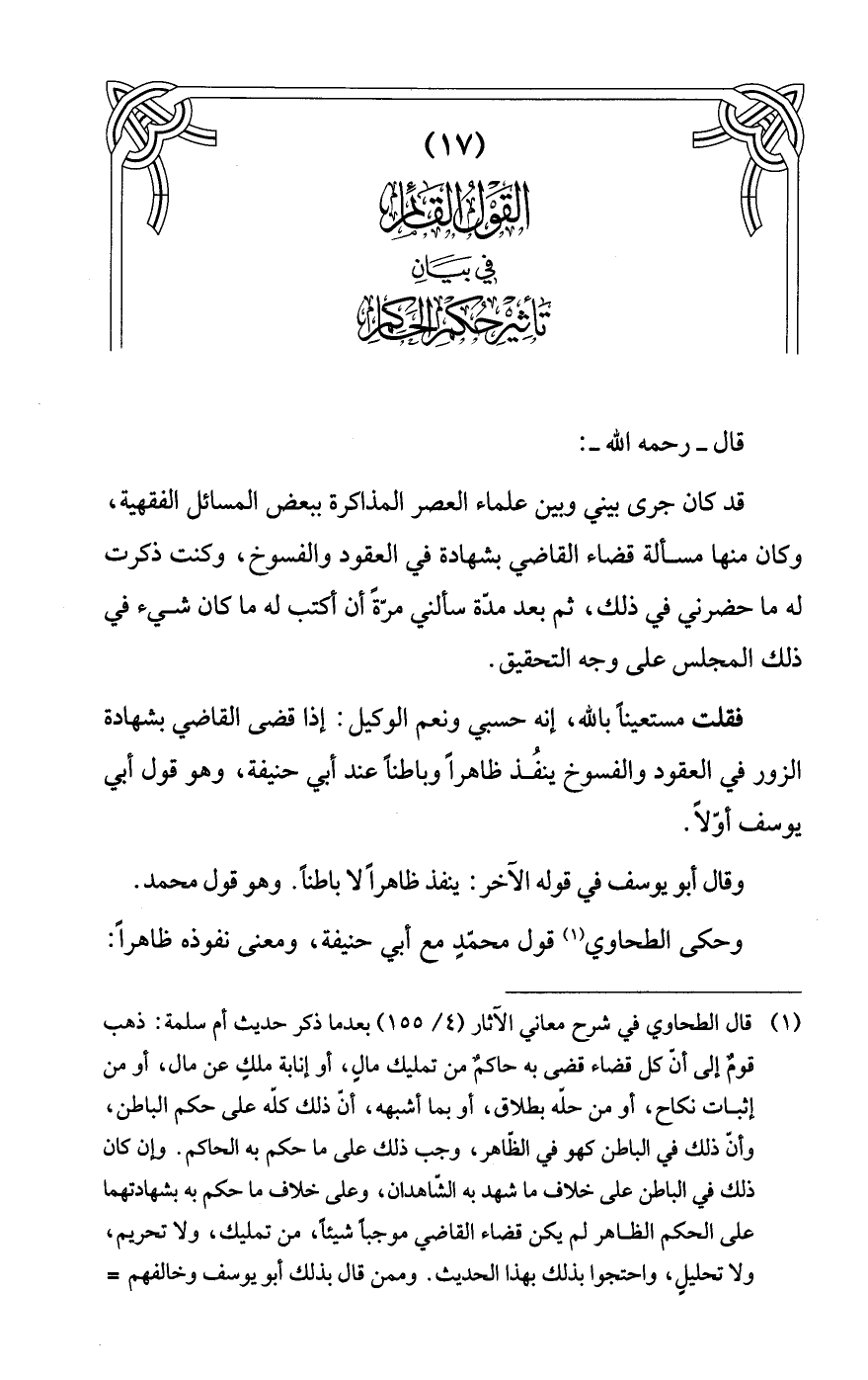 (17) القَوْلُ القَائِم في بَيَانِ تَأْثِيرِ حُكْمِ الحَاكِمِ