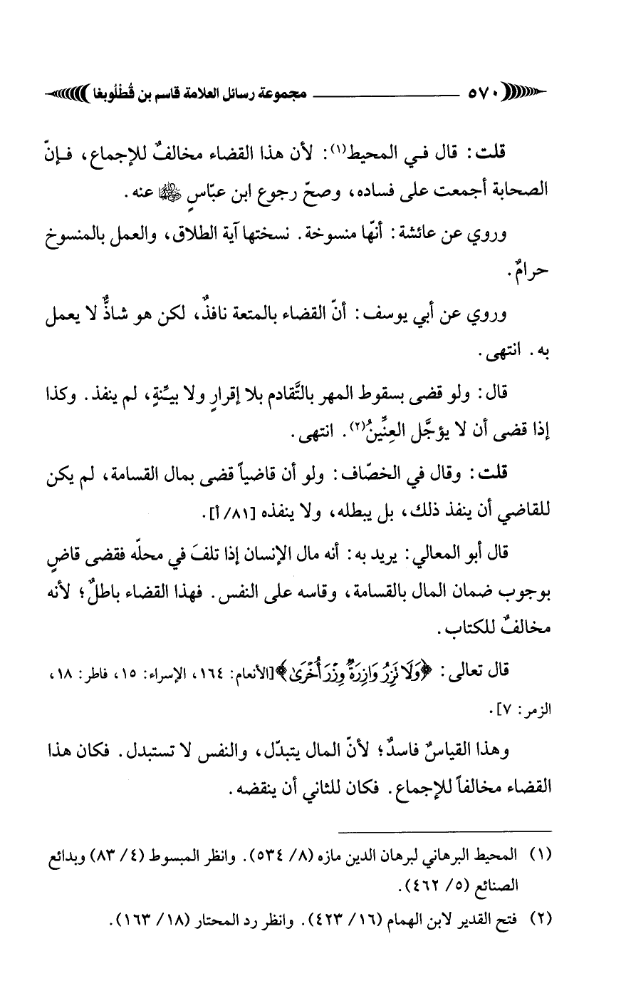 (¬2) فتح القدير لابن الهمام (16/ 423). وانظر رد المحتار (18/ 163).