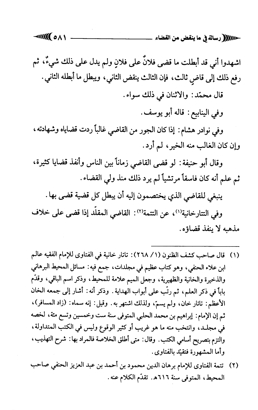 (¬2) تتمة الفتاوى للإمام برهان الدين محمود بن أحمد بن عبد العزيز الحنفي صاحب المحيط، المتوفى سنهّ 616 هـ. تقدّم الكلام عنه.