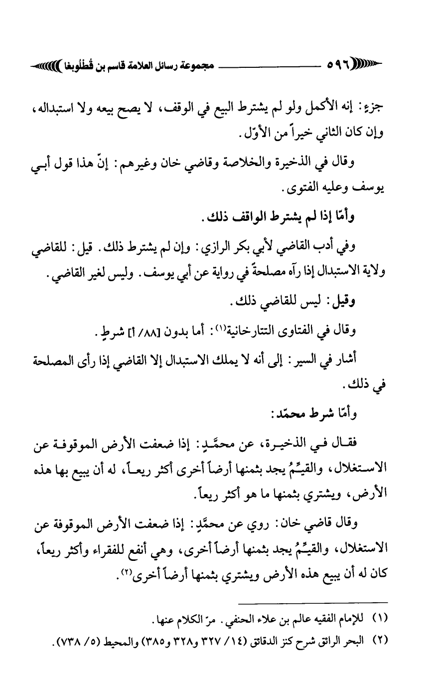 (¬2) البحر الرائق شرح كنز الدقائق (14/ 327 و 328 و 385) والمحيط (5/ 738).