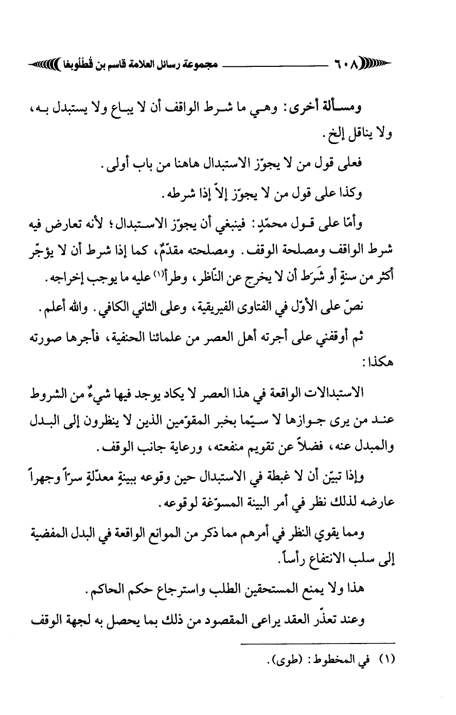 ثم أوقفني على أجرته أهل العصر من علمائنا الحنفية، فأجرها صورته هكذا:
