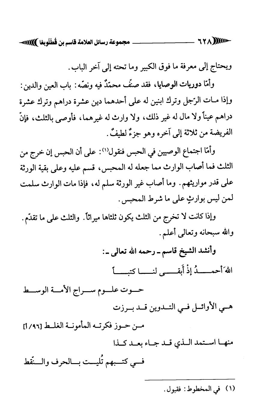 وأنشد الشيخ قاسم - رحمه الله تعالى -: