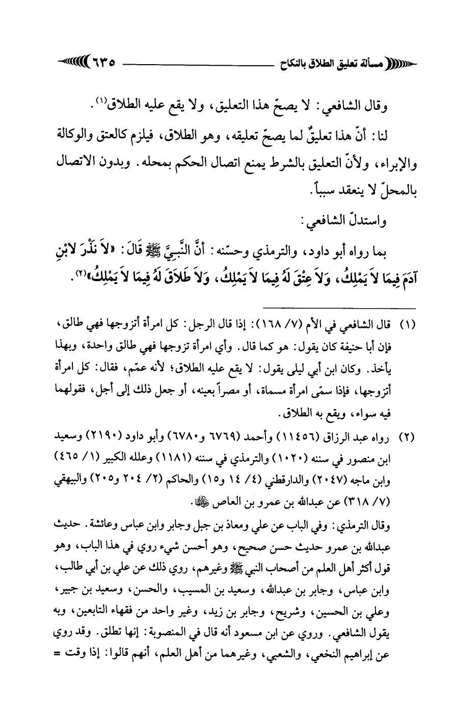 (¬2) رواه عبد الرزاق (11456) وأحمد (6769 و 6780) وأبو داود (2190) وسعيد ابن منصور في سننه (1020) والترمذي في سننه (1181) وعلله الكبير (1/ 465) وابن ماجه (2047) والدارقطني (4/ 14 و 15) والحاكم (2/ 204 و 205) والبيهقي (7/ 318) عن عبد الله بن عمرو بن العاص - رضي الله عنه -.