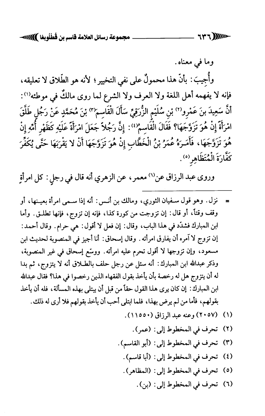وأُجِيبَ: بأنّ هذا محمولٌ على نفي التخيير؛ لأنه هو الطّلاق لا تعليقه، فإنه لا يفهمه أهل اللغة ولا العرف ولا الشرع لما روى مالكٌ في موطئه (¬1): أنَّ سَعِيدَ بنَ عَمْرِو (¬2) بْنِ سُلَيْمٍ الزُّرَقِيِّ سَأَلَ الْقَاسِم (¬3) بْنَ مُحَمَّدٍ عَنْ رَجُل طَلَّقَ امْرَأَةً إنْ هُوَ تَزَوَّجَهَا؟ فَقَالَ الْقَاسِم (¬4): إِنَّ رَجُلًا جَعَلَ امْرَأَةً عَلَيْهِ كَظَهْرِ أُمِّهِ إِنْ هُوَ تَزَوَّجَهَا، فَأَمَرَهُ عُمَرُ بْنُ الْخَطَّابِ إِنْ هُوَ تَزَوَّجَهَا أَنْ لا يَقْرَبَهَا حَتَّى يُكَفِّرَ كَفَّارَةَ الْمُتَظَاهِرِ (¬5).