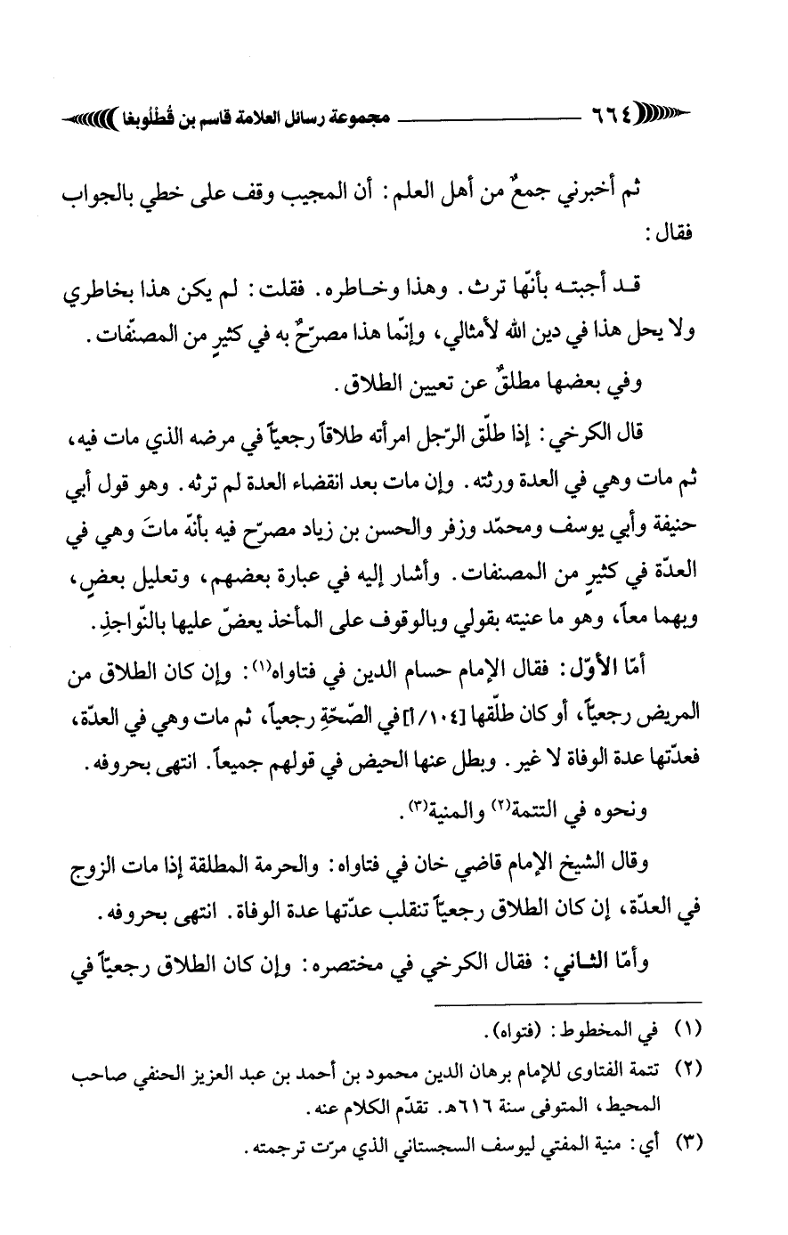 (¬2) تتمة الفتاوى للإمام برهان الدين محمود بن أحمد بن عبد العزيز الحنفي صاحب المحيط، المتوفى سنة 616 هـ. تقدّم الكلام عنه.