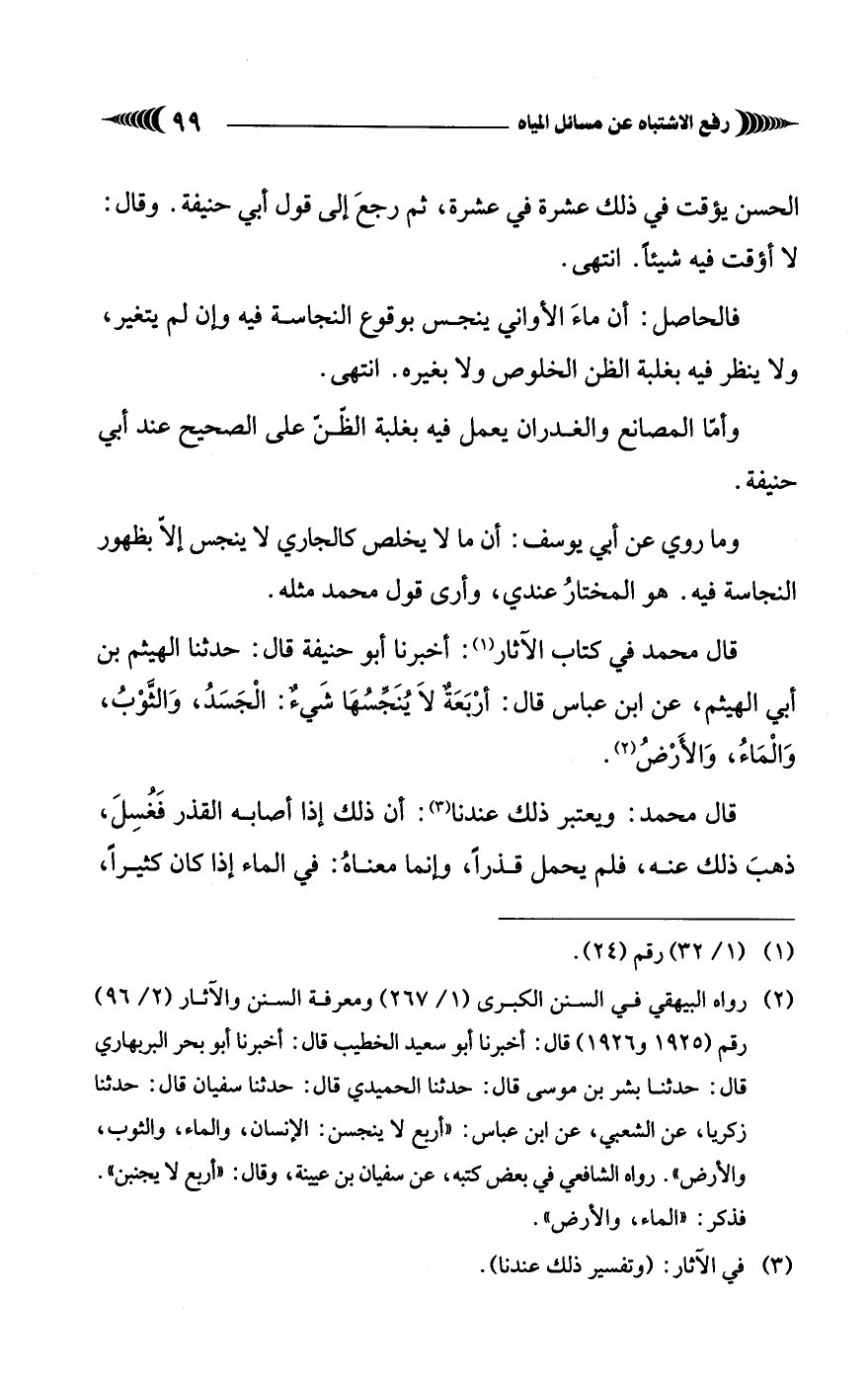 قال محمَّد: ويعتبر ذلك عندنا (¬3): أن ذلك إذا أصابه القذّر فَغُسِلَ، ذهبَ ذلك عنه، فلم يحمل قذراً، وإنما معناهُ: في الماء إذا كان كثيرًا،