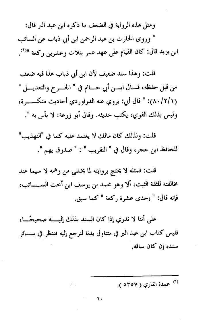 قلت: فمثله لا يحتج بروايته لما يخشى من وهمه لا سيما عند مخالفته للثقة الثبت ألا وهو محمد بن يوسف ابن أخت السائب فإنه قال: " إحدى عشرة ركعة " كما سبق