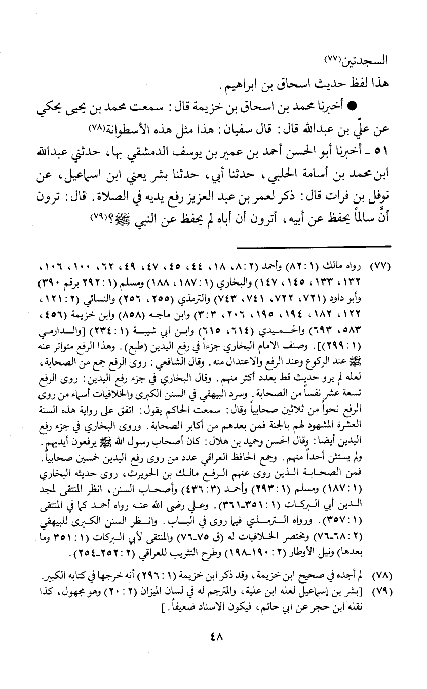 51 - أَخْبَرَنَا أَبُو الْحَسَنِ أَحْمَدُ بْنُ عُمَيْرِ بْنِ يُوسُفَ الدِّمَشْقِيُّ بِهَا، حَدَّثَنِي عَبْدُ اللَّهِ بْنُ مُحَمَّدِ بْنِ أُسَامَةَ الْحَلَبِيُّ، نَا أَبِي، نَا بِشْرٌ يَعْنِي ابْنَ إِسْمَاعِيلَ، عَنْ نَوْفَلِ بْنِ فُرَاتٍ، قَالَ: ذُكِرَ لِعُمَرَ بْنِ عَبْدِ الْعَزِيزِ §رَفْعُ يَدَيْهِ فِي الصَّلَاةِ قَالَ: «تَرَوْنَ أَنَّ سَالِمًا يَحْفَظُ عَنْ أَبِيهِ أَتَرَوْنَ أَنَّ أَبَاهُ يَحْفَظُ عَنِ النَّبِيِّ صَلَّى اللهُ عَلَيْهِ وَسَلَّمَ»