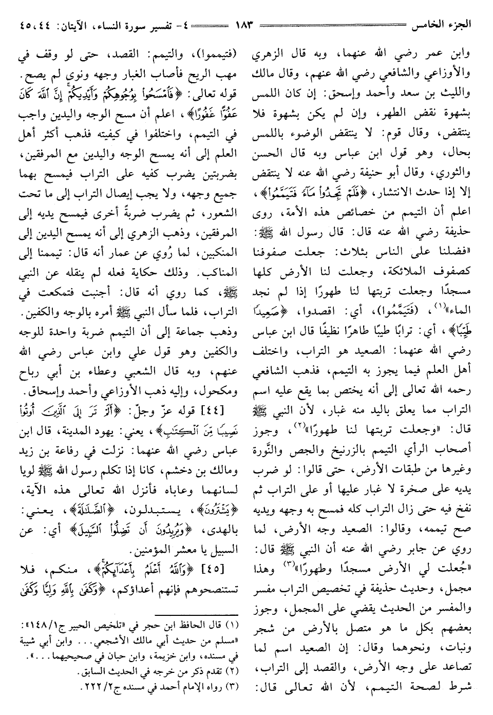 [44] ، قَوْلُهُ عَزَّ وَجَلَّ: {أَلَمْ تَرَ إِلَى الَّذِينَ أُوتُوا نَصِيبًا مِنَ الْكِتَابِ} [النساء: 44] يَعْنِي: يَهُودَ الْمَدِينَةِ، قَالَ ابْنُ عَبَّاسٍ رَضِيَ اللَّهُ عَنْهُمَا: نَزَلَتْ فِي رِفَاعَةَ بْنِ زَيْدٍ وَمَالِكِ بن دخشم، كانا إِذَا تَكَلَّمَ رَسُولُ اللَّهِ صَلَّى الله عليه وسلم لويا لسانهما وَعَابَاهُ فَأَنْزَلَ اللَّهُ تَعَالَى هَذِهِ الآية، {يَشْتَرُونَ} [النساء: 44] يستبدلون، {الضَّلَالَةَ} [النساء: 44] يَعْنِي: بِالْهُدَى، {وَيُرِيدُونَ أَنْ تَضِلُّوا السَّبِيلَ} [النساء: 44] أَيْ: عَنِ السَّبِيلِ يَا مَعْشَرَ المؤمنين.