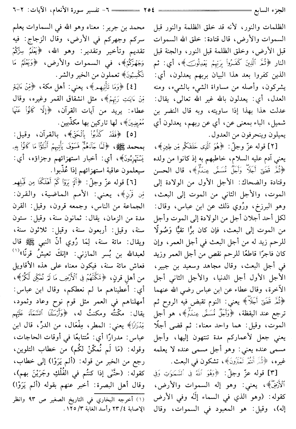 [2] قَوْلُهُ عَزَّ وَجَلَّ: {هُوَ الَّذِي خَلَقَكُمْ مِنْ طِينٍ} [الأنعام: 2] يَعْنِي آدَمَ عَلَيْهِ السَّلَامُ، خَاطَبَهُمْ بِهِ إِذْ كَانُوا مِنْ وَلَدِهِ، {ثُمَّ قَضَى أَجَلًا وَأَجَلٌ مُسَمًّى عِنْدَهُ} [الأنعام: 2] قَالَ الْحَسَنُ وَقَتَادَةُ وَالضَّحَّاكُ: الْأَجَلُ الْأَوَّلُ مِنَ الْوِلَادَةِ إِلَى الْمَوْتِ، وَالْأَجَلُ الثَّانِي مِنَ الْمَوْتِ إِلَى الْبَعْثِ، وَهُوَ الْبَرْزَخُ، وَرُوِيَ ذَلِكَ عَنِ ابْنِ عَبَّاسٍ، وَقَالَ: لِكُلِّ أحد أجلان أجل من الولادة إِلَى الْمَوْتِ وَأَجَلٌ مِنَ الْمَوْتِ إِلَى الْبَعْثِ، فَإِنْ كَانَ بَرًّا تَقِيًّا وَصُولا لِلرَّحِمِ زِيدَ لَهُ مِنْ أَجَلِ الْبَعْثِ فِي أَجَلِ الْعُمْرِ، وَإِنْ كَانَ فَاجِرًا قَاطِعًا لِلرَّحِمِ نَقُصَ مِنْ أَجَلِ الْعُمْرِ وَزِيدَ فِي أَجَلِ الْبَعْثِ، وَقَالَ مُجَاهِدٌ وَسَعِيدُ بْنُ جُبَيْرٍ: الْأَجَلُ الْأَوَّلُ أَجَلُ الدُّنْيَا، وَالْأَجَلُ الثَّانِي أجل الآخرة، وَقَالَ عَطَاءٌ عَنِ ابْنِ عَبَّاسٍ رَضِيَ اللَّهُ عَنْهُمَا {ثُمَّ قَضَى أَجَلًا} [الأنعام: 2] يَعْنِي: النَّوْمَ تُقْبَضُ فِيهِ الرُّوحُ ثُمَّ تَرْجِعُ عِنْدَ الْيَقَظَةِ، {وَأَجَلٌ مُسَمًّى عِنْدَهُ} [الأنعام: 2] هو أَجْلَ الْمَوْتِ، وَقِيلَ: هُمَا وَاحِدٌ مَعْنَاهُ: ثُمَّ قَضَى أَجَلًا يَعْنِي جُعِلَ لِأَعْمَارِكُمْ مُدَّةً تَنْتَهُونَ إِلَيْهَا، وَأَجَلٌ مُسَمًّى عِنْدَهُ يَعْنِي: وَهُوَ أَجَلٌ مُسَمًّى عِنْدَهُ لَا يَعْلَمُهُ غيره، {ثُمَّ أَنْتُمْ تَمْتَرُونَ} [الأنعام: 2] تَشُكُّونَ فِي الْبَعْثِ.