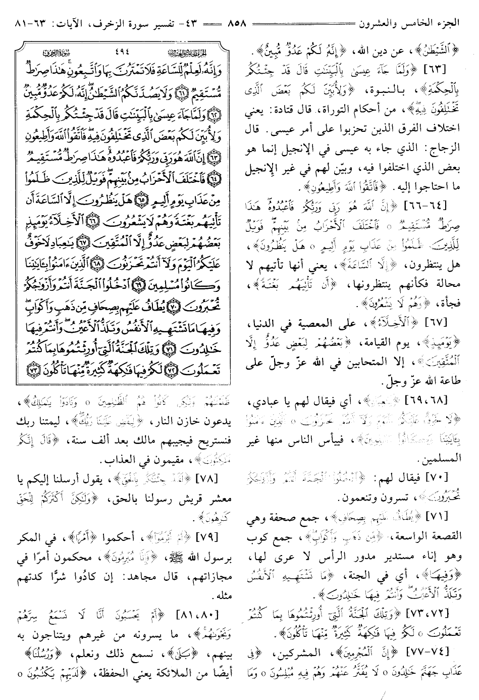 [74 - 77] {إِنَّ الْمُجْرِمِينَ} [الزخرف: 74] الْمُشْرِكِينَ، {فِي عَذَابِ جَهَنَّمَ خَالِدُونَ - لَا يُفَتَّرُ عَنْهُمْ وَهُمْ فِيهِ مُبْلِسُونَ - وَمَا ظَلَمْنَاهُمْ وَلَكِنْ كَانُوا هُمُ الظَّالِمِينَ - وَنَادَوْا يَا مَالِكُ} [الزخرف: 74 - 77] يَدْعُونَ خَازِنَ النَّارِ، {لِيَقْضِ عَلَيْنَا رَبُّكَ} [الزخرف: 77] لِيُمِتْنَا رَبُّكَ فَنَسْتَرِيحَ فَيُجِيبُهُمْ مَالِكٌ بَعْدَ أَلْفِ سَنَةٍ، {قَالَ إِنَّكُمْ مَاكِثُونَ} [الزخرف: 77] مقيمون في العذاب.