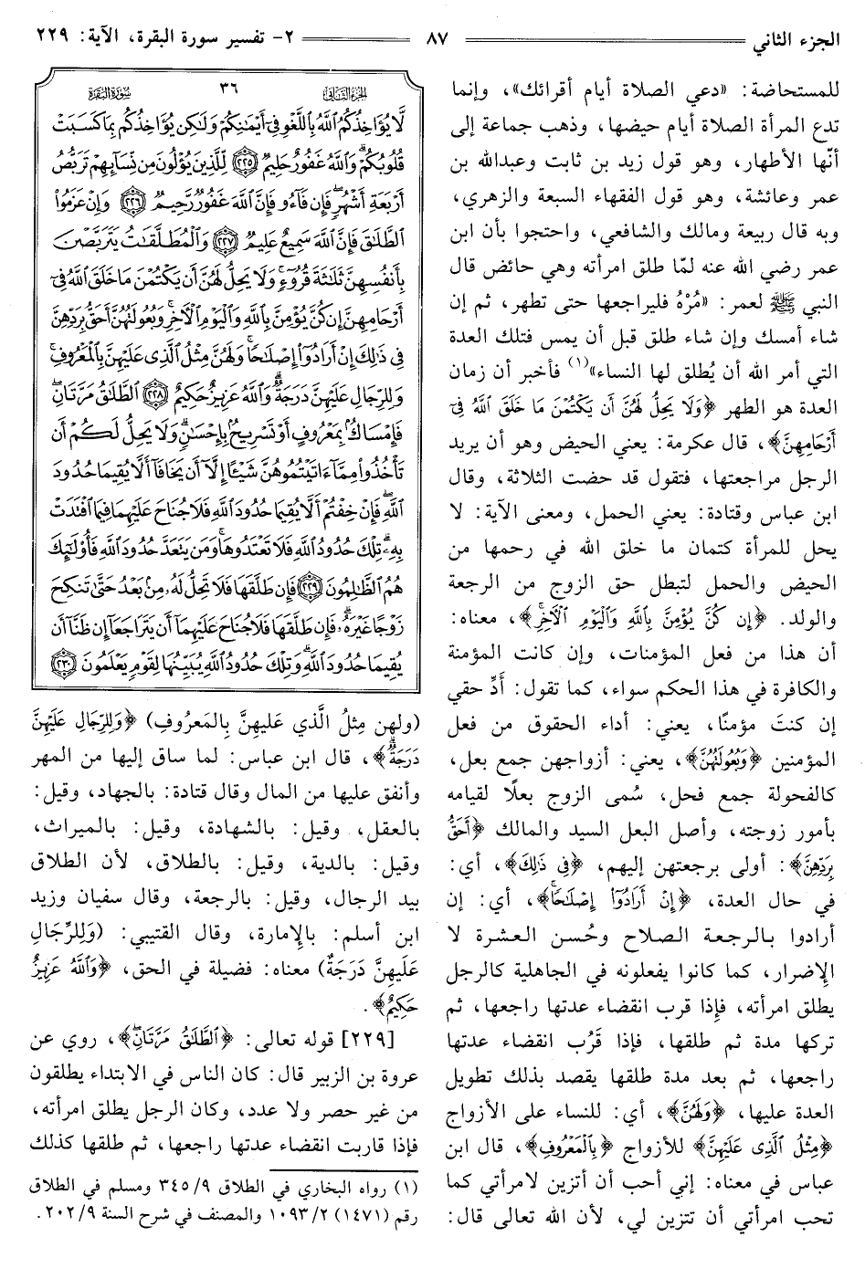 [229] قوله تعالى: {الطَّلَاقُ مَرَّتَانِ} [البقرة: 229] رُوِيَ عَنْ عُرْوَةَ بْنِ الزُّبَيْرِ قَالَ: كَانَ النَّاسُ فِي الِابْتِدَاءِ يُطَلِّقُونَ مِنْ غَيْرِ حَصْرٍ وَلَا عِدَدٍ، وَكَانَ الرَّجُلُ يُطَلِّقُ امْرَأَتَهُ، فَإِذَا قَارَبَتِ انْقِضَاءَ عِدَّتِهَا رَاجَعَهَا، ثم طلقها كذلك