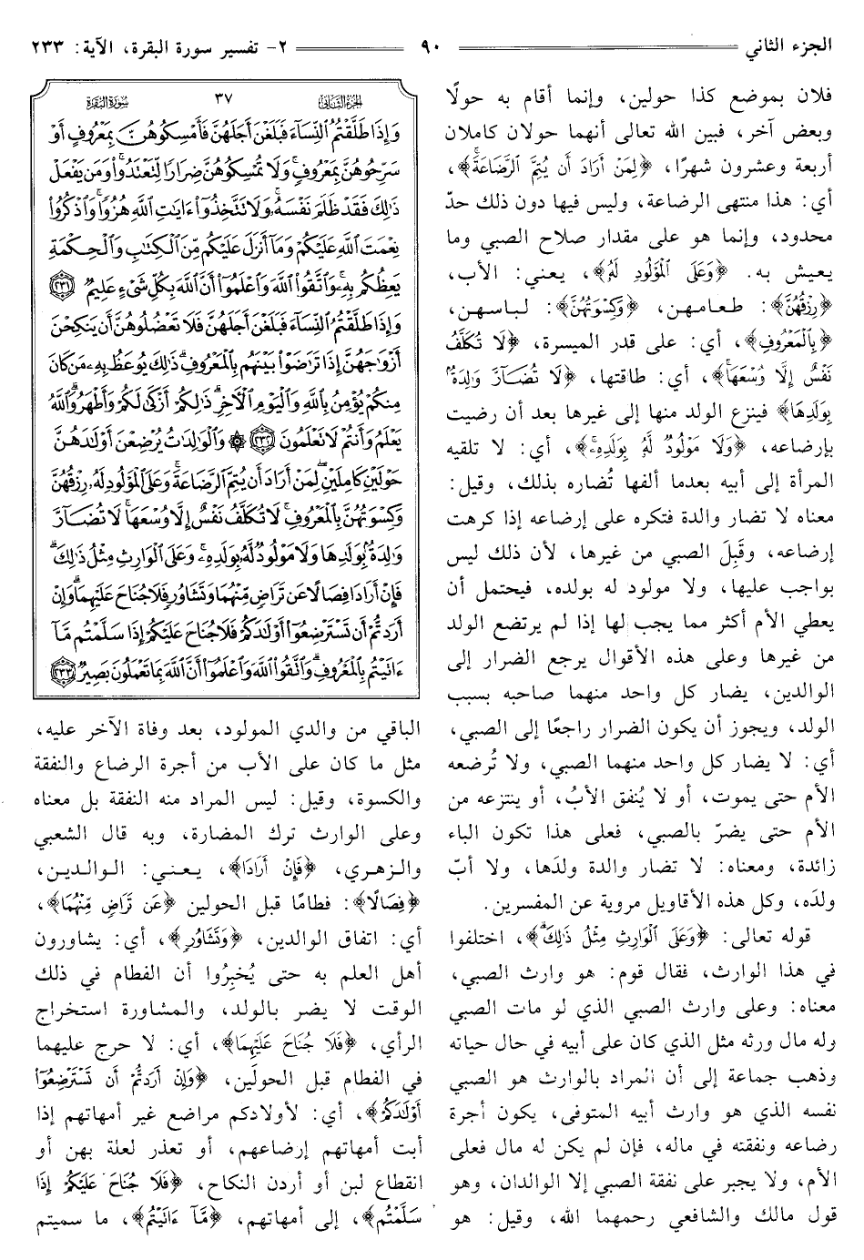 قَوْلُهُ تَعَالَى: {وَعَلَى الْوَارِثِ مِثْلُ ذَلِكَ} [البقرة: 233] اخْتَلَفُوا فِي هَذَا الْوَارِثِ، فَقَالَ قَوْمٌ: هُوَ وَارِثُ الصَّبِيِّ، مَعْنَاهُ: وَعَلَى وَارِثِ الصَّبِيِّ الَّذِي لَوْ مَاتَ الصَّبِيُّ وَلَهُ مَالٌ وَرِثَهُ مِثْلُ الَّذِي كَانَ عَلَى أَبِيهِ في حال حياته وَذَهَبَ جَمَاعَةٌ إِلَى أَنَّ الْمُرَادَ بِالْوَارِثِ هُوَ الصَّبِيُّ نَفْسُهُ الَّذِي هو وارث أبيه المتوفى، يكون أُجْرَةُ رَضَاعِهِ وَنَفَقَتُهُ فِي مَالِهِ، فَإِنْ لَمْ يَكُنْ لَهُ مَالٌ فَعَلَى الْأُمِّ، وَلَا يُجْبَرُ عَلَى نَفَقَةِ الصَّبِيِّ إِلَّا الْوَالِدَانِ، وَهُوُ قَوْلُ مَالِكٍ وَالشَّافِعِيِّ رَحِمَهُمَا اللَّهُ، وَقِيلَ: هُوَ الْبَاقِي مِنْ وَالِدَيِ الْمَوْلُودِ, بَعْدَ وَفَاةِ الْآخَرِ عَلَيْهِ, مِثْلُ مَا كَانَ عَلَى الْأَبِ مِنْ أُجْرَةِ الرَّضَاعِ وَالنَّفَقَةِ وَالْكِسْوَةِ, وَقِيلَ: لَيْسَ الْمُرَادُ مِنْهُ النَّفَقَةَ بَلْ مَعْنَاهُ وَعَلَى الْوَارِثِ تَرْكُ الْمُضَارَّةِ, وَبِهِ قَالَ الشَّعْبِيُّ وَالزُّهْرِيُّ، {فَإِنْ أَرَادَا} [البقرة: 233] يعني: الوالدين, {فِصَالًا} [البقرة: 233] فِطَامًا قَبْلَ الْحَوْلَيْنِ {عَنْ تَرَاضٍ مِنْهُمَا} [البقرة: 233] أي: اتفاق الوالدين, {وَتَشَاوُرٍ} [البقرة: 233] أَيْ: يُشَاوِرُونَ أَهْلَ الْعِلْمِ بِهِ حَتَّى يُخْبِرُوا أَنَّ الْفِطَامَ فِي ذلك الوقت لا يضر بالوالد, وَالْمُشَاوَرَةُ اسْتِخْرَاجُ الرَّأْيِ, {فَلَا جُنَاحَ عَلَيْهِمَا} [البقرة: 233] أَيْ: لَا حَرَجَ عَلَيْهِمَا فِي الْفِطَامِ قَبْلَ الْحَوْلَيْنِ, {وَإِنْ أَرَدْتُمْ أَنْ تَسْتَرْضِعُوا أَوْلَادَكُمْ} [الْبَقَرَةِ: 233] أَيْ: لِأَوْلَادِكُمْ مَرَاضِعَ غَيْرَ أُمَّهَاتِهِمْ إِذَا أبت أمهاتهم إرضاعهم, أو تعذر لعلة بهن أو انقطاع لبن أَرَدْنَ النِّكَاحَ, {فَلَا جُنَاحَ عَلَيْكُمْ إِذَا سَلَّمْتُمْ} [البقرة: 233] إلى أمهاتهم, {مَا آتَيْتُمْ} [البقرة: 233] مَا سَمَّيْتُمْ
