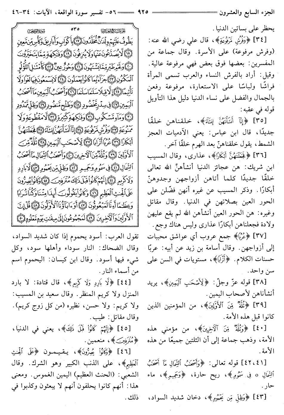 [34] {وَفُرُشٍ مَرْفُوعَةٍ} [الواقعة: 34] قَالَ عَلِيٌّ رَضِيَ اللَّهُ عَنْهُ: {وَفُرُشٍ مَرْفُوعَةٍ} [الواقعة: 34] عَلَى الْأَسِرَّةِ.