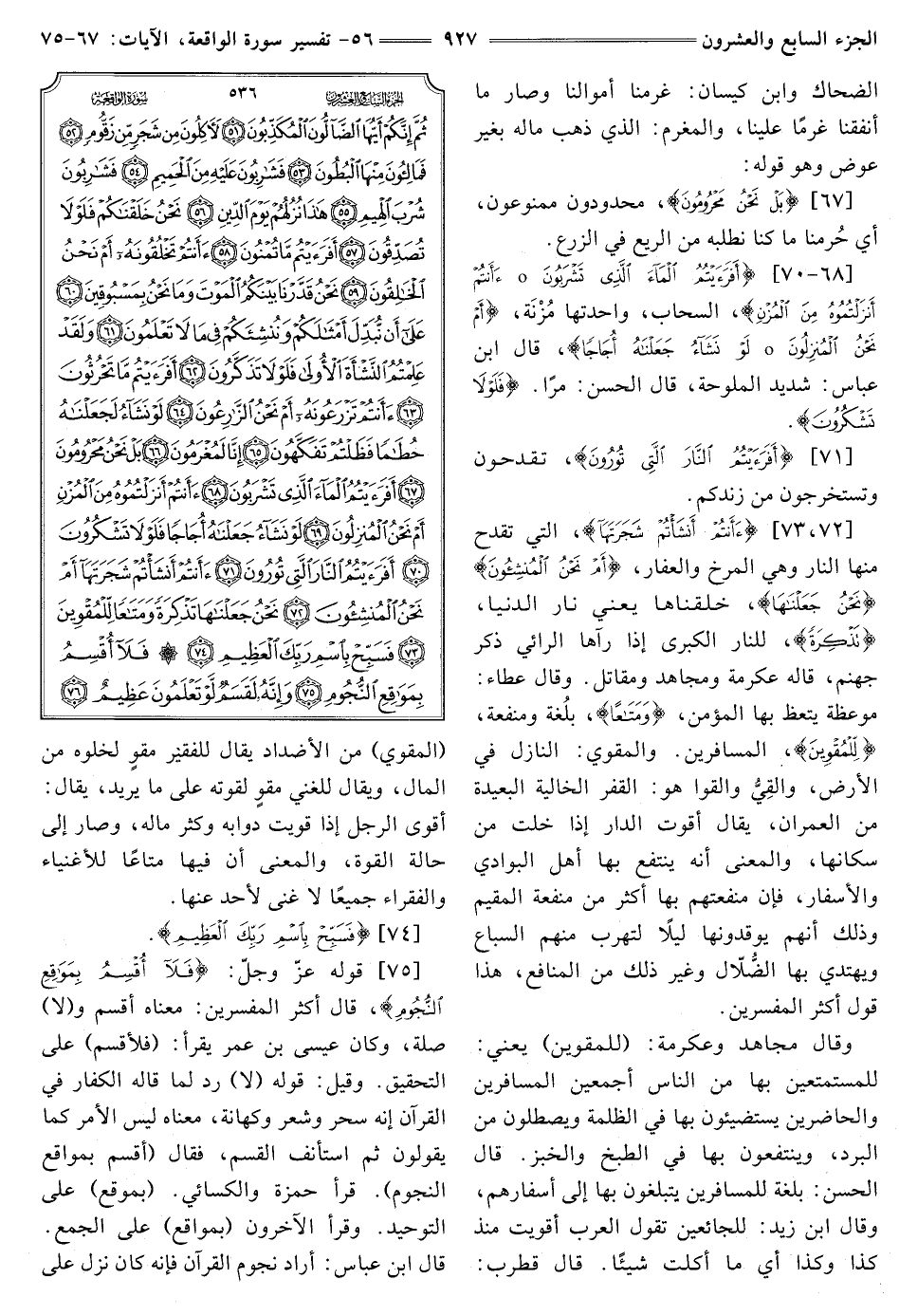 [75] قَوْلُهُ عَزَّ وَجَلَّ: {فَلَا أُقْسِمُ بِمَوَاقِعِ النُّجُومِ} [الواقعة: 75] قَالَ أَكْثَرُ الْمُفَسِّرِينَ: مَعْنَاهُ أُقْسِمُ وَ (لَا) صِلَةٌ، وَكَانَ عِيسَى بْنُ عُمَرَ يَقْرَأُ: (فَلَأُقْسِمُ) عَلَى التحقيق.