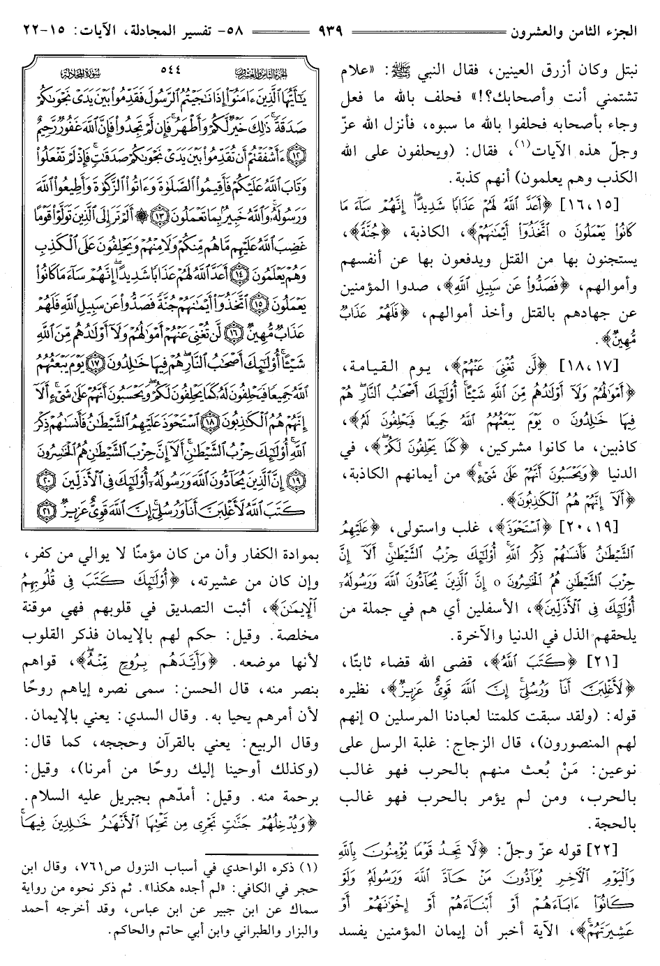 [19 - 20] {اسْتَحْوَذَ} [المجادلة: 19] غَلَبَ وَاسْتَوْلَى، {عَلَيْهِمُ الشَّيْطَانُ فَأَنْسَاهُمْ ذِكْرَ اللَّهِ أُولَئِكَ حِزْبُ الشَّيْطَانِ أَلَا إِنَّ حِزْبَ الشَّيْطَانِ هُمُ الْخَاسِرُونَ - إِنَّ الَّذِينَ يُحَادُّونَ اللَّهَ وَرَسُولَهُ أُولَئِكَ فِي الْأَذَلِّينَ} [المجادلة: 19 - 20] الْأَسْفَلِينَ أَيْ هُمْ فِي جُمْلَةِ مَنْ يَلْحَقُهُمُ الذُّلُّ فِي الدُّنْيَا والآخرة.
