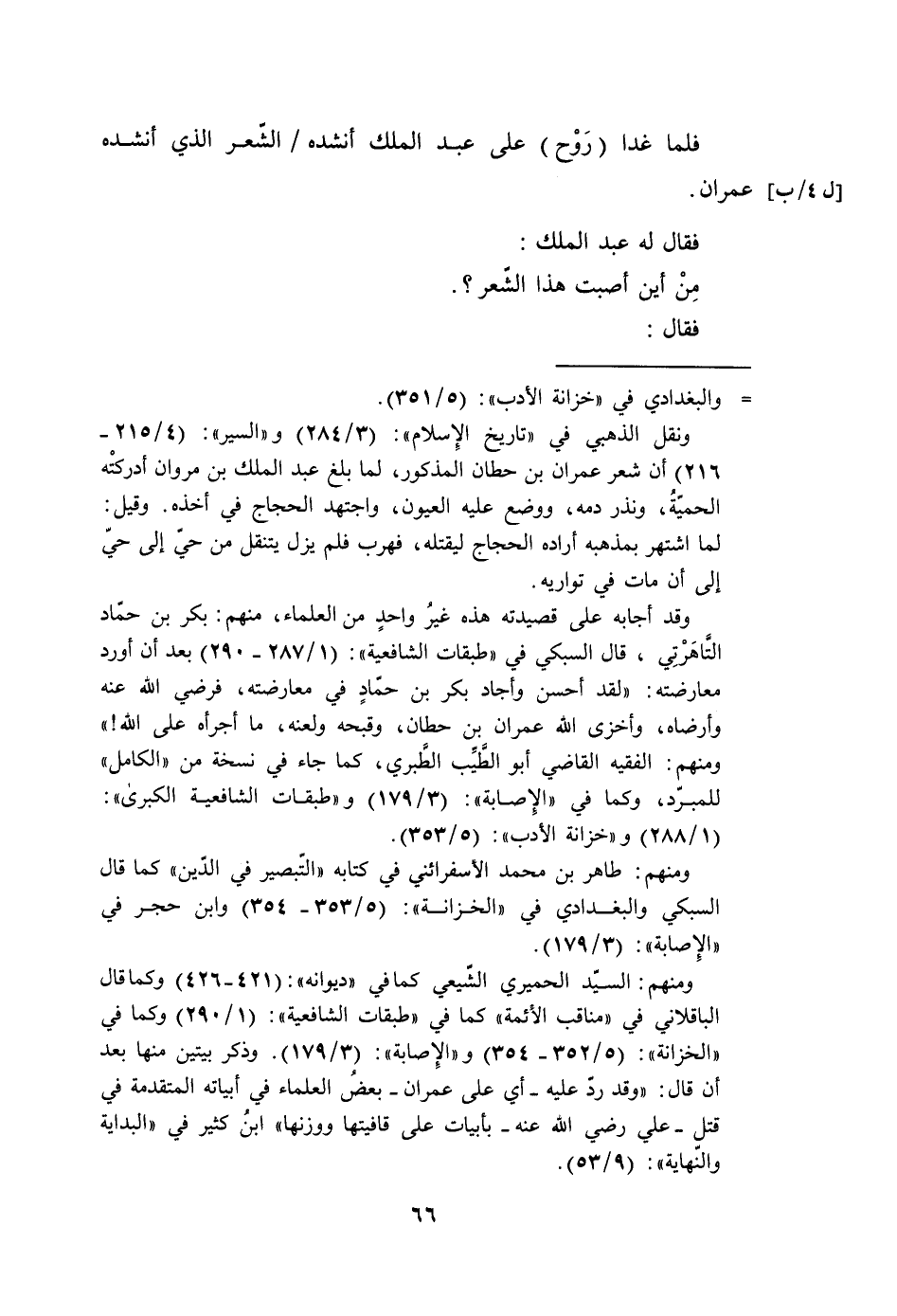 الشّعْر الَّذِي أنْشدهُ عمرَان فَقَالَ لَهُ عبد الْملك من أَيْن أصبت هَذَا الشّعْر فَقَالَ