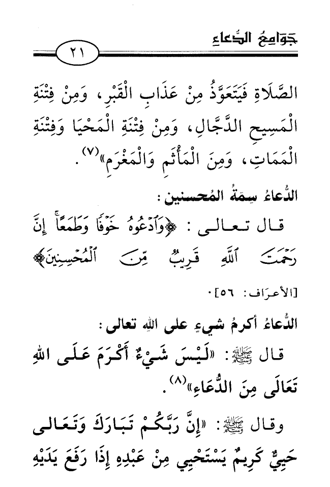 (¬7) متفق عليه من حديث عائشة رضي الله عنها: أخرجه البخاريّ؛ كتاب الأذان، باب: الدُّعاء قبل السلام، برقم (832). ومسلم؛ كتاب المساجد، باب: ما يستعاذ منه في الصلاة، برقم (589).