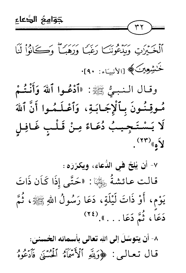 6 - الخشوعُ وحُضوُر القلبِ في الدُّعاءِ، مع اليقين بالإجابة: