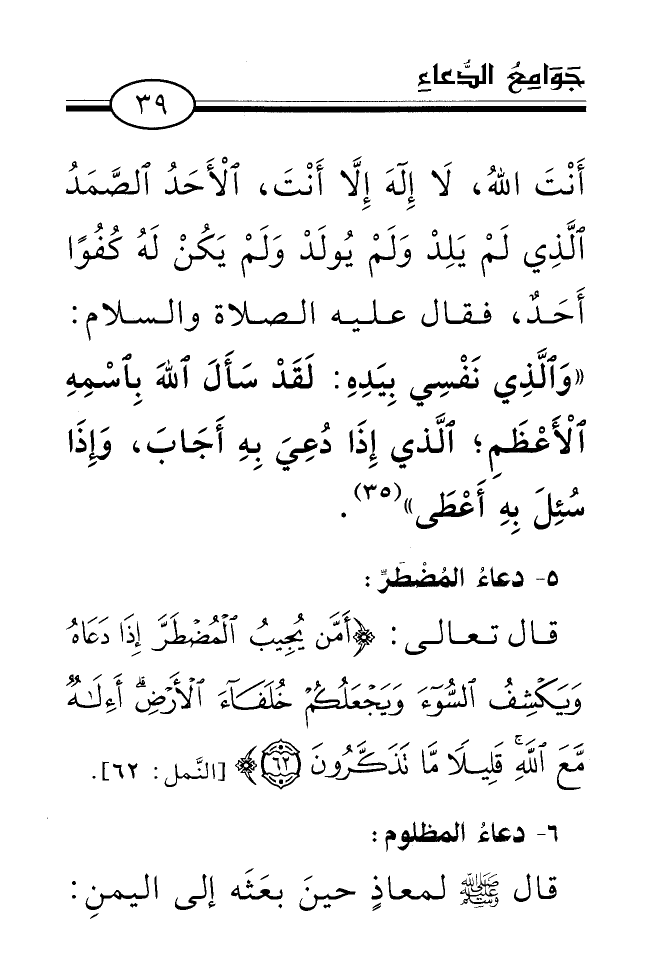 قَالَ النبيُّ صلى الله عليه وسلم: «خَيْرُ الدُّعَاءِ دُعَاءُ يَوْمِ عَرَفَةَ، وَخَيْرُ مَا قُلْتُ أَنَاْ وَالنَّبِيُّونَ مِنْ قَبْلِي: لاَ إلَهَ إِلاَّ اللهُ وَحْدَهُ لاَ شَرِيكَ لَهُ، لَهُ الْمُلْكُ، وَلَهُ الْحَمْدُ، وَهُوَ عَلَى كُلِّ شَيْءٍ قَدِيرٌ» (¬30).