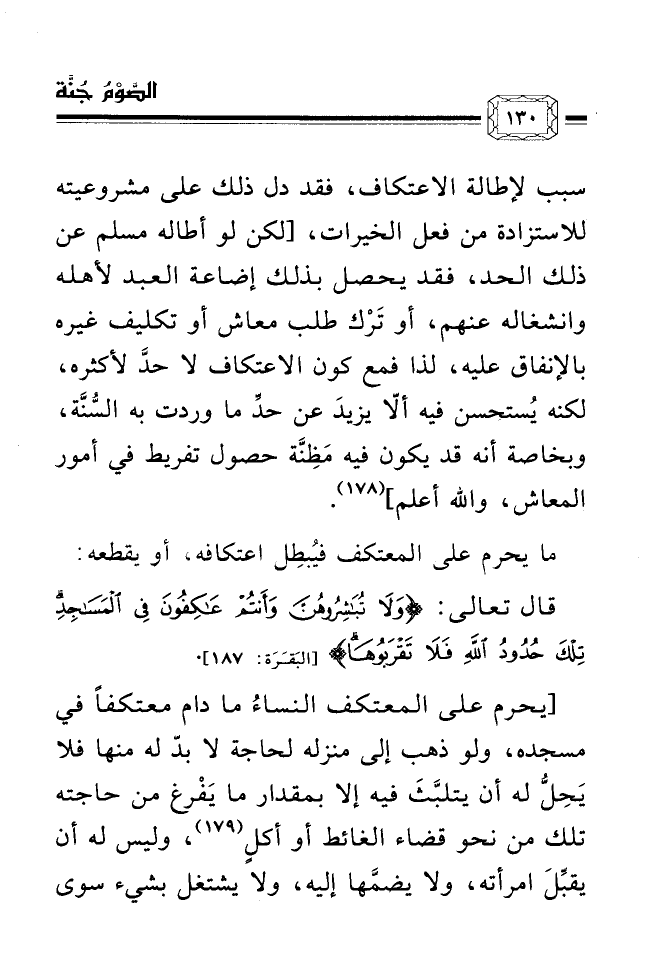 (¬178) مستفاد من نص إجابة لفضيلة العلامة ابن جبرين حفظه الله. انظر: حوار في الاعتكاف، إعداد سالم الجهني، ص (11) .
