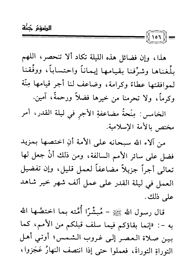 الخامس: مِنْحةُ مضاعفةِ الأجرِ في ليلة القدر، أمر مختص بالأمة الإسلامية.