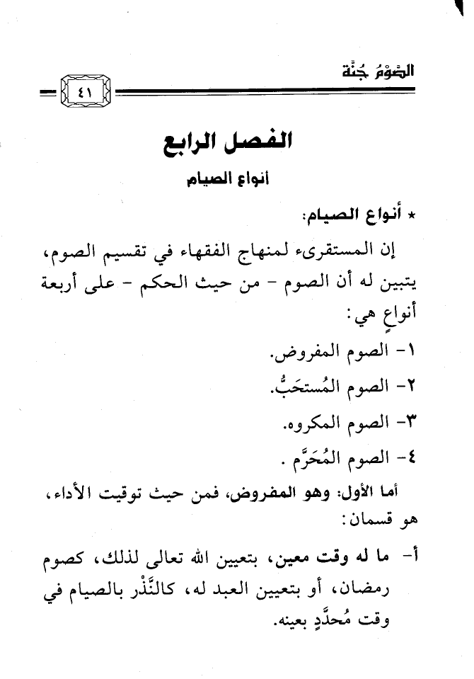 إن المستقرىء لمنهاج الفقهاء في تقسيم الصوم، يتبين له أن الصوم - من حيث الحكم - على أربعة أنواعٍ هي: