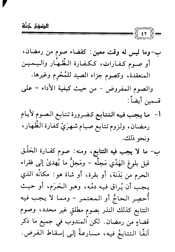 والصوم المفروض - من حيث كيفية الأداء - على قسمين أيضاً: