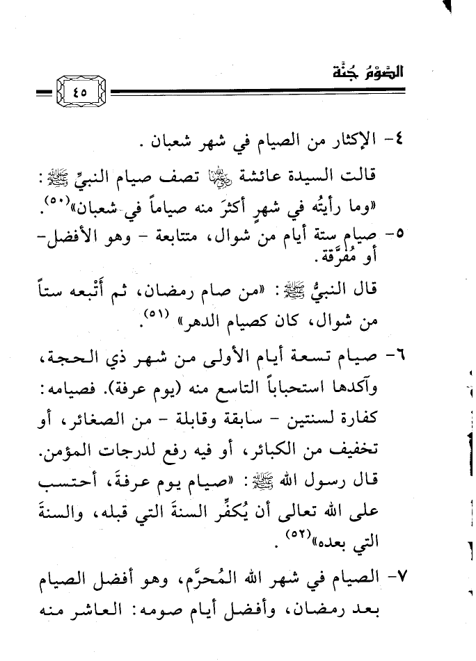 (¬51) أخرجه مسلم؛ كتاب الصيام، باب: استحباب صوم ستة أيام من شوال إِتْباعاً لرمضان، برقم (1164) ، عن أبي أيوب الأنصاري رضي الله عنه.