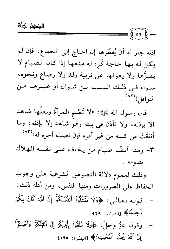 3- ... ومنه أيضًا صيام من يخاف على نفسه الهلاك بصومه.