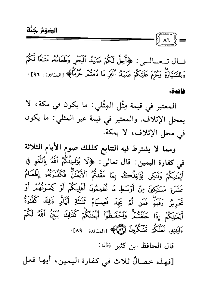 قال تعالى: {أُحِلَّ لَكُمْ صَيْدُ الْبَحْرِ وَطَعَامُهُ مَتَاعًا لَكُمْ وَلِلسَّيَّارَةِ وَحُرِّمَ عَلَيْكُمْ صَيْدُ الْبَرِّ مَا دُمْتُمْ حُرُمًا} [المَائدة: 96] .