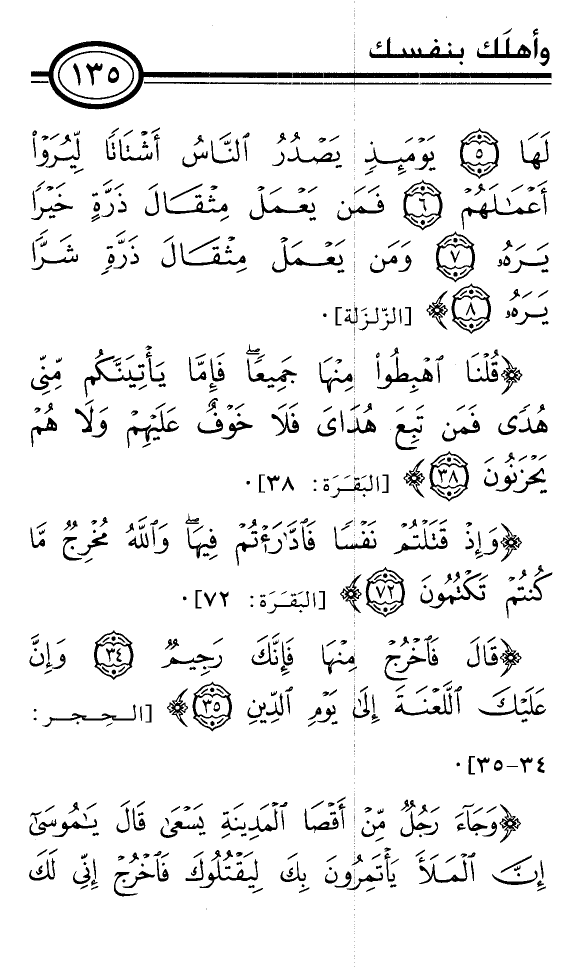لَهَا *يَوْمَئِذٍ يَصْدُرُ النَّاسُ أَشْتَاتًا لِيُرَوْا أَعْمَالَهُمْ *فَمَنْ يَعْمَلْ مِثْقَالَ ذَرَّةٍ خَيْرًا يَرَهُ *وَمَنْ يَعْمَلْ مِثْقَالَ ذَرَّةٍ شَرًّا يَرَهُ *} [الزّلزَلة] .