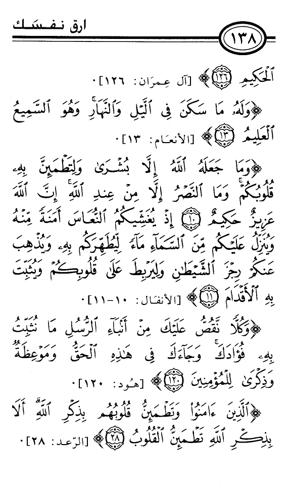 {الَّذِينَ آمَنُوا وَتَطْمَئِنُّ قُلُوبُهُمْ بِذِكْرِ اللَّهِ أَلاَ بِذِكْرِ اللَّهِ تَطْمَئِنُّ الْقُلُوبُ *} [الرّعد: 28] .
