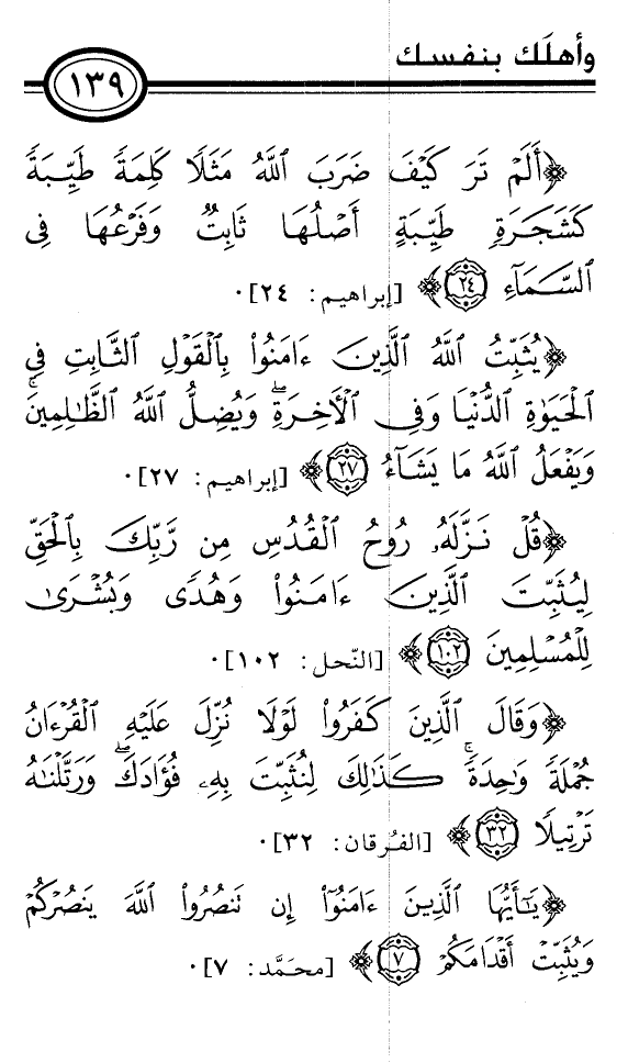 {يُثَبِّتُ اللَّهُ الَّذِينَ آمَنُوا بِالْقَوْلِ الثَّابِتِ فِي الْحَيَاةِ الدُّنْيَا وَفِي الآخِرَةِ وَيُضِلُّ اللَّهُ الظَّالِمِينَ وَيَفْعَلُ اللَّهُ مَا يَشَاءُ *} [إبراهيم: 27] .