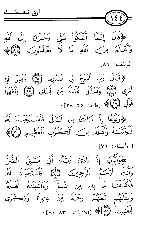 {قَالَ إِنَّمَا أَشْكُو بَثِّي وَحُزْنِي إِلَى اللَّهِ وَأَعْلَمُ مِنَ اللَّهِ مَا لاَ تَعْلَمُونَ *} . [يُوسُف: 86]