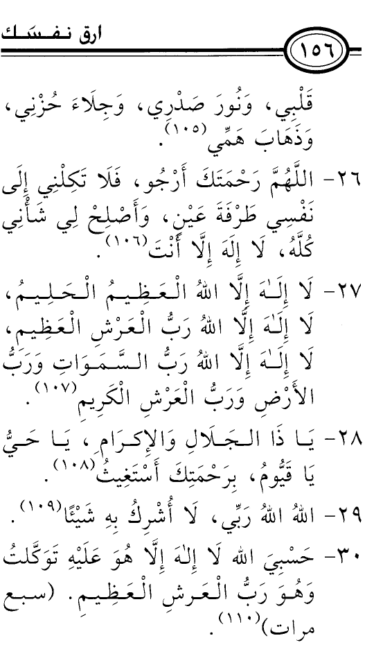 حَسْبِيَ الله لاَ إِلهَ إِلاَّ هُوَ عَلَيْهِ تَوَكَّلتُ وَهُوَ رَبُّ الْعَرشِ الْعَظِيمِ. (سبع مرات) (¬110) .