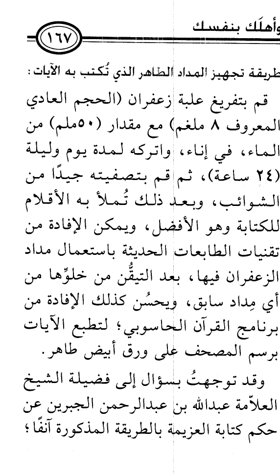 طريقة تجهيز المداد الطاهر الذي تُكتب به الآيات: