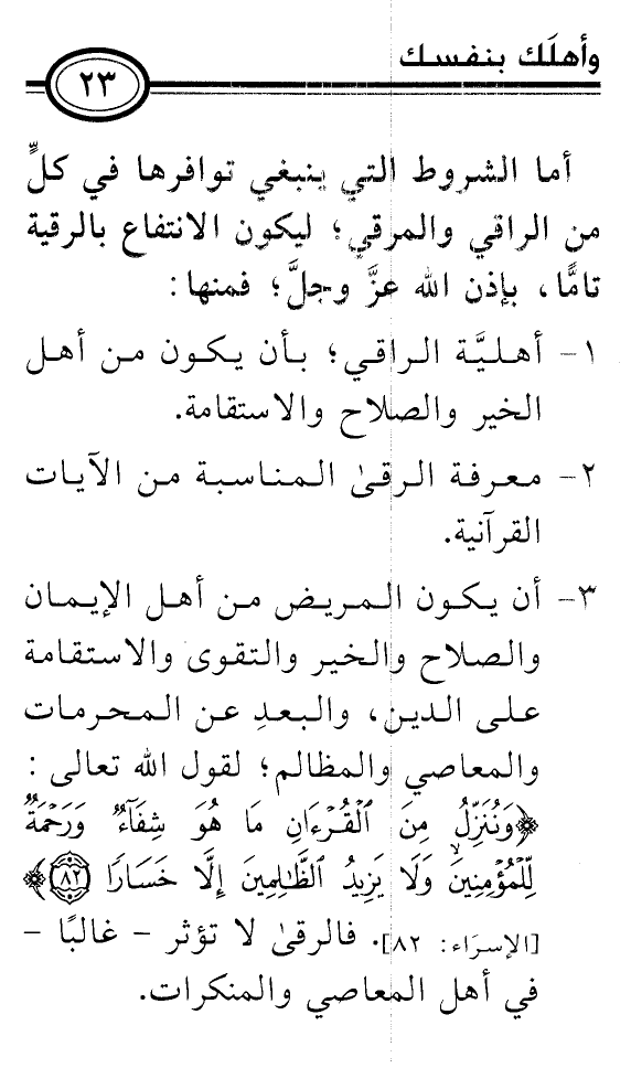 2- ... معرفة الرقى المناسبة من الآيات القرآنية.
